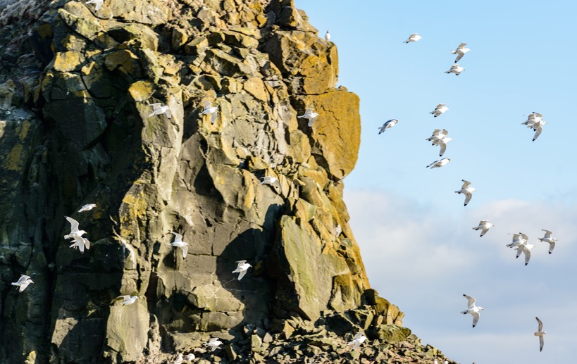 Black-legged Kittiwake. Látrabjarg bird cliffs. West Fiords. 65°30'3" N 24°31'40" W