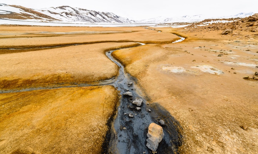 Hot springs drainage creek. Thermal activity at Námaskarð. 65°38'30" N 16°48'29" W
